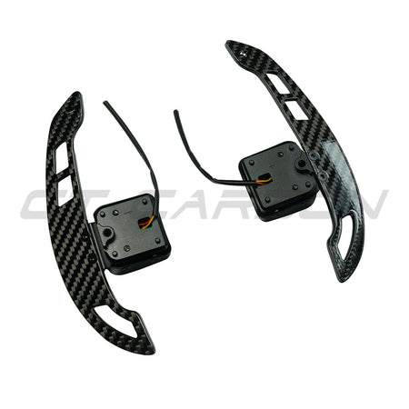 Crafted from ultra-lightweight pre-preg carbon fibre, these premium magnetic paddles are designed for 2014+ Audi A3/S3/RS3, A4/S4/RS4, and A5/S5/RS5 models. Each set includes two interchangeable paddle options — one larger pair for extended reach and one smaller pair designed to match OEM sizing.