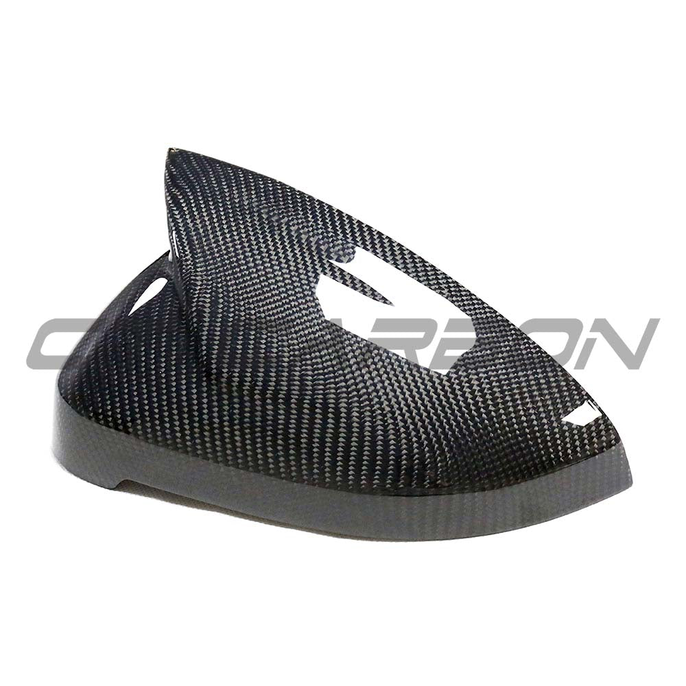 Enhance your AUDI A4 B9 with these Carbon Fibre Mirror Cover Replacements with Blindspot Assist, made from high-quality, ultra-lightweight, dry/pre-preg carbon fibre in a high gloss finish.