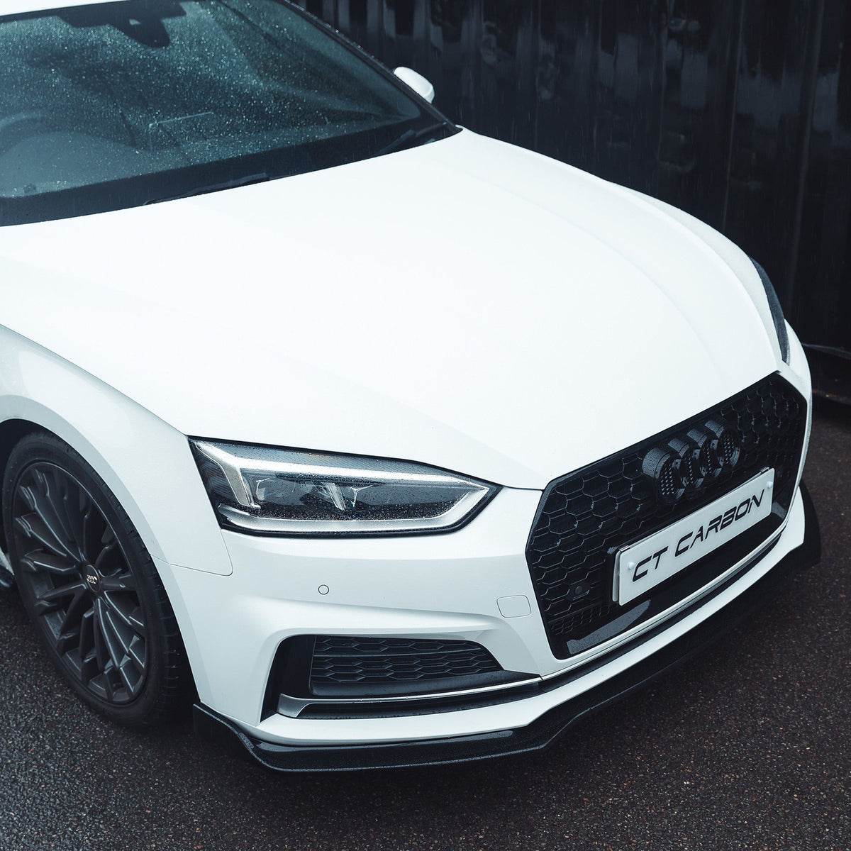CT Carbon splitter made from high-quality ABS plastic to fit the Audi A5 and S5 B9 2016-2019, finished in GLOSS BLACK paint
