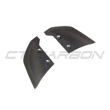 CT Carbon offers these carbon rear bumper lower corners for your Audi R8 V10 Gen 2, crafted from high-quality carbon fibre in a high-gloss finish.