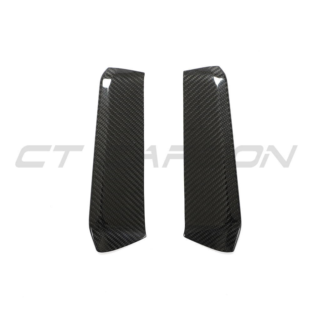 The CT Design front bumper corners made for the Audi RS3 8Y, made from high-quality, ultra-lightweight pre-preg carbon fibre and finished in a high gloss. A subtle but beautiful exterior trim change.