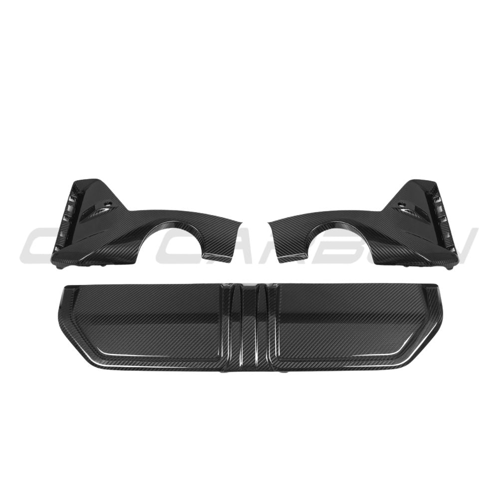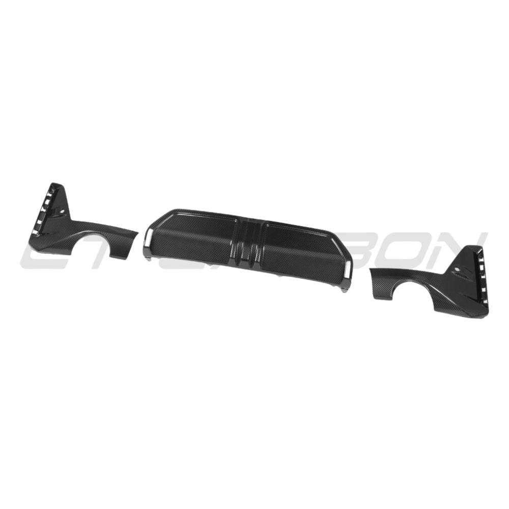 Enhance the styling of your BMW 3 Series G20/G21 with CT Carbon's diffuser with round tips in MP style, made from genuine pre-preg/dry carbon fibre in a high gloss finish.