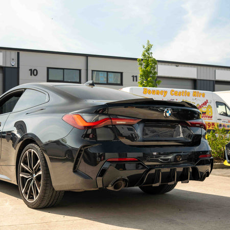 BLACK by CT Carbon diffuser with round exhaust cut out's made to fit the BMW 4 Series G22 & G23. Made from high-quality ABS plastic finished in GLOSS BLACK.