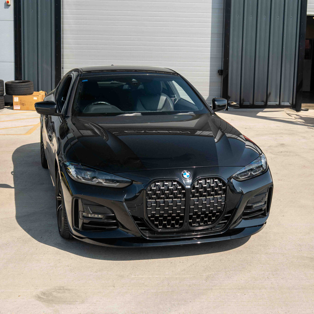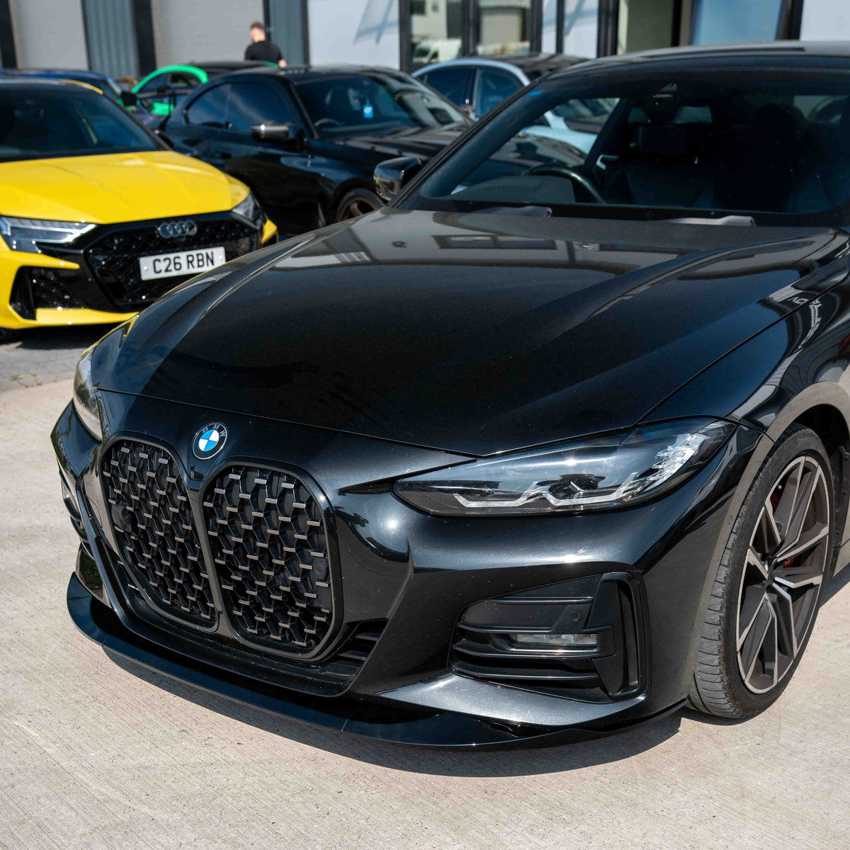 CT Carbon splitter made to fit the BMW 4 series. Made from high-quality ABS plastic finished in GLOSS BLACK.