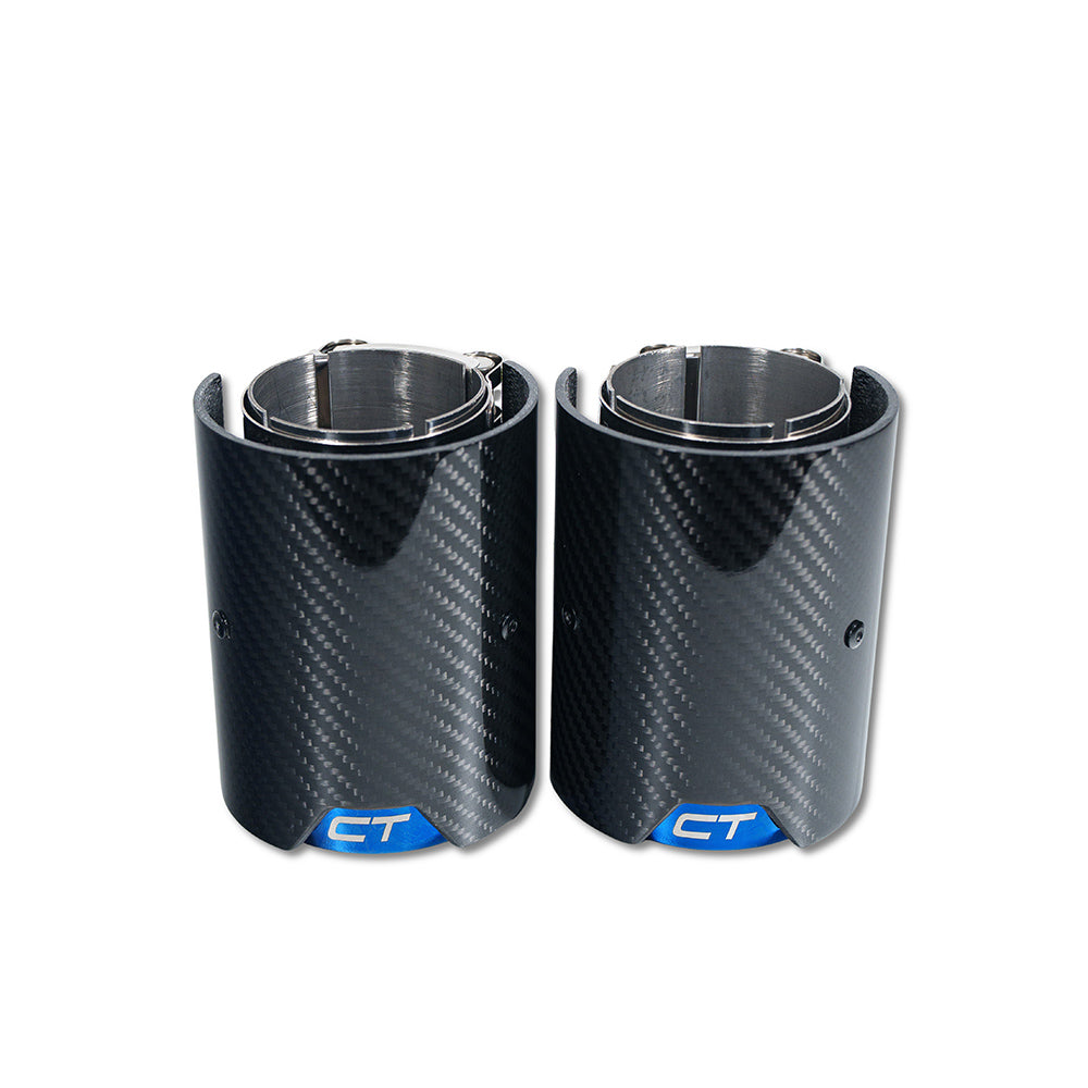 CT Carbon exhaust tips are made from high-quality carbon fibre and stainless steel to fit various models of the BMW range with the N55 and B58 engines as shown below. Set of 2 tips