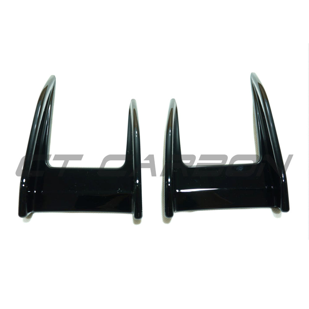 Enhance the exterior of your BMW F40 1 Series with our high-quality ABS plastic gloss black canards for the front end of your vehicle.