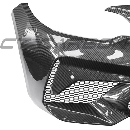 CT Carbon presents our high-quality pre-preg carbon fibre front bumper for the BMW F87 M2 Competition, a complete replacement for the OEM bumper to transform the front end of your vehicle.