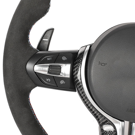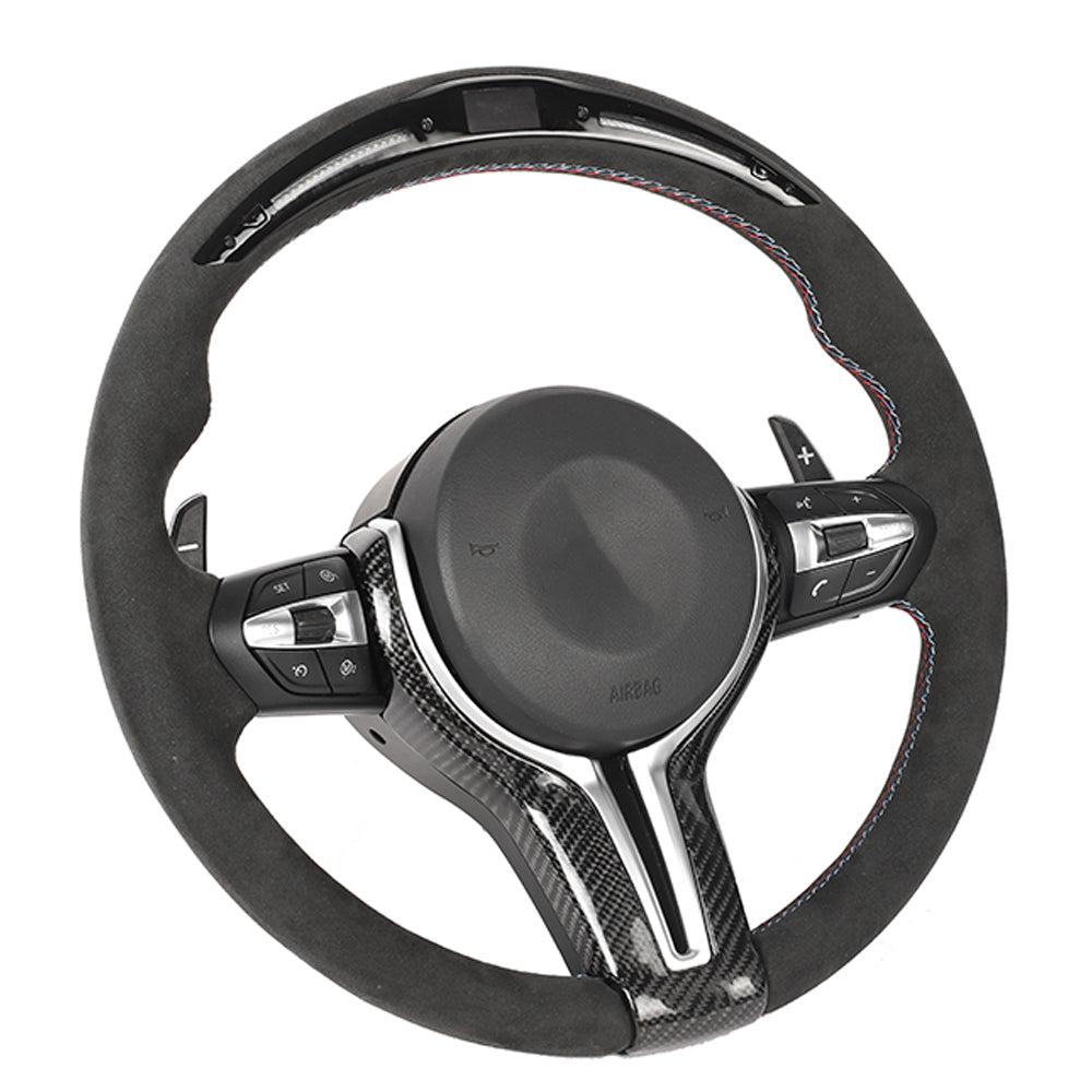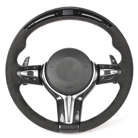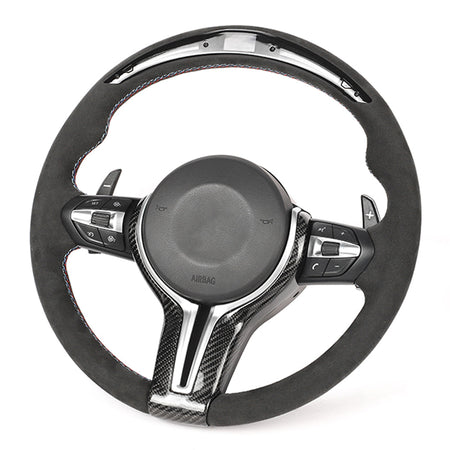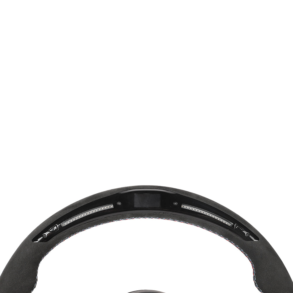 Upgrade your BMW with the BMW FXX Alcantara & LED Round Custom Steering Wheel offering a transformative modification for your interior and driving experience.