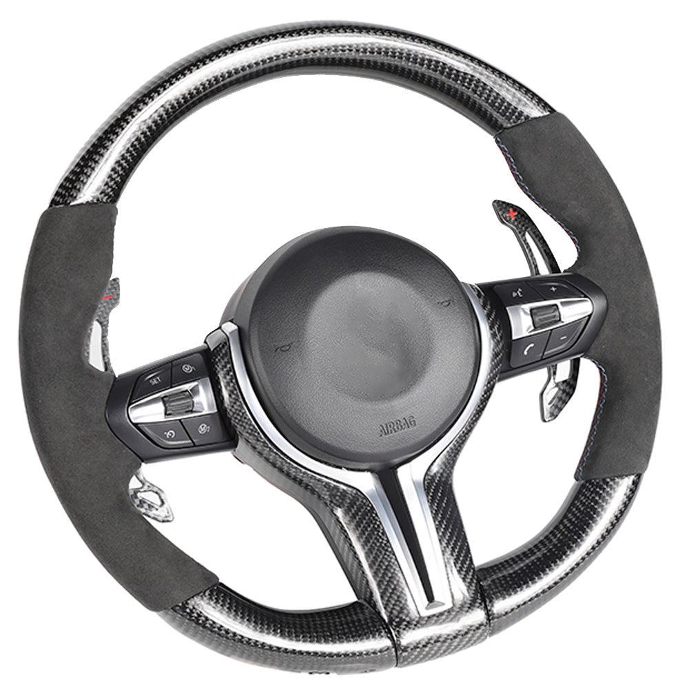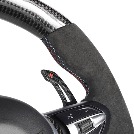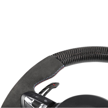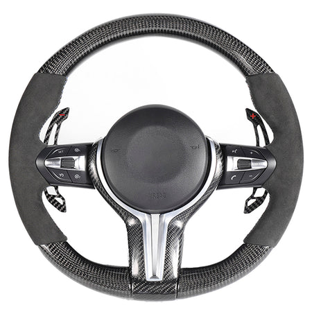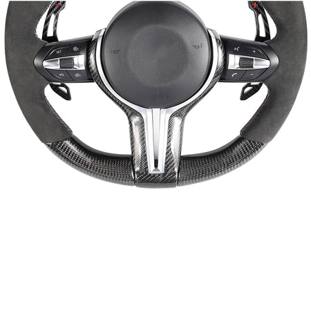 BMW FXX Carbon Fibre & Alcantara Flat Bottom Custom Steering Wheel by CT Carbon gives you a premium interior upgrade that enhances style and transforms the interior of any FXX BMW with a perfect fit and quality finish to add a high-end touch to the interior.
