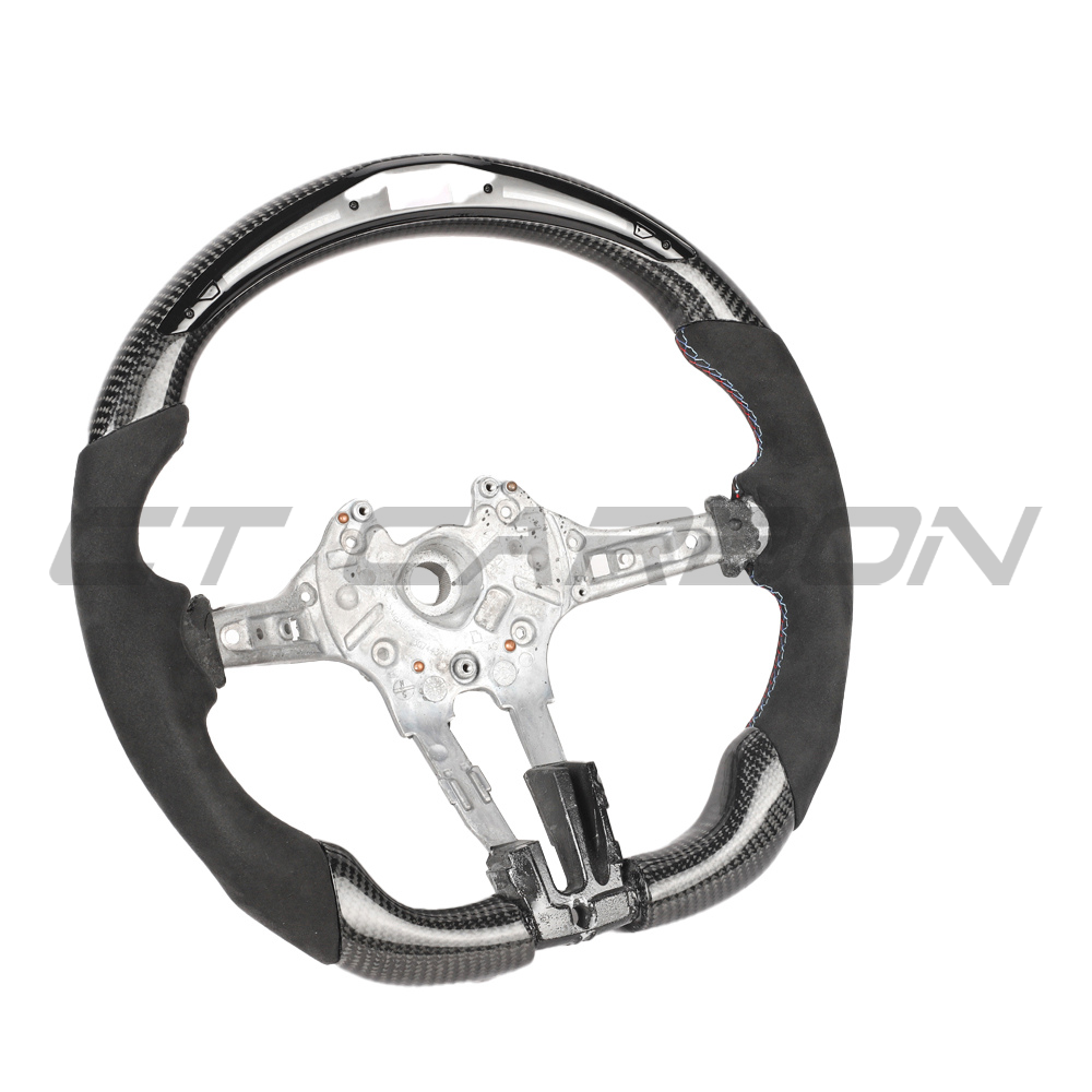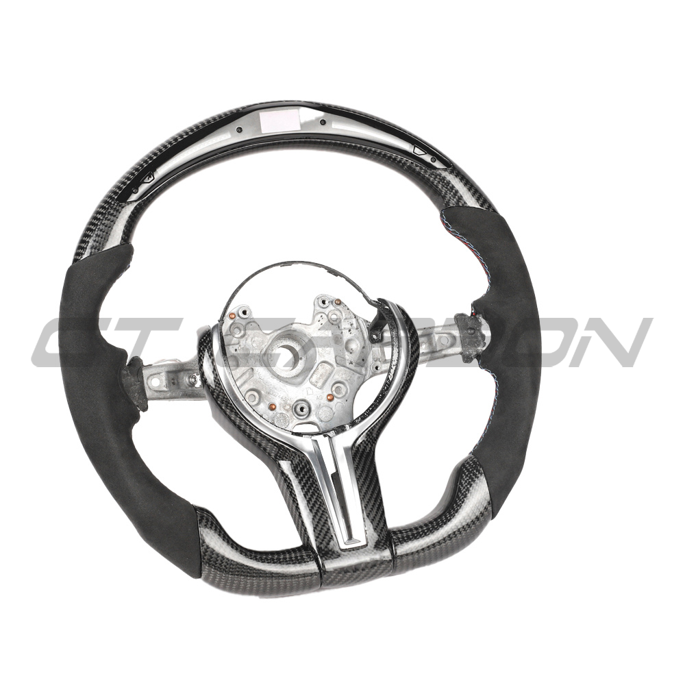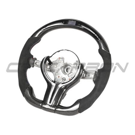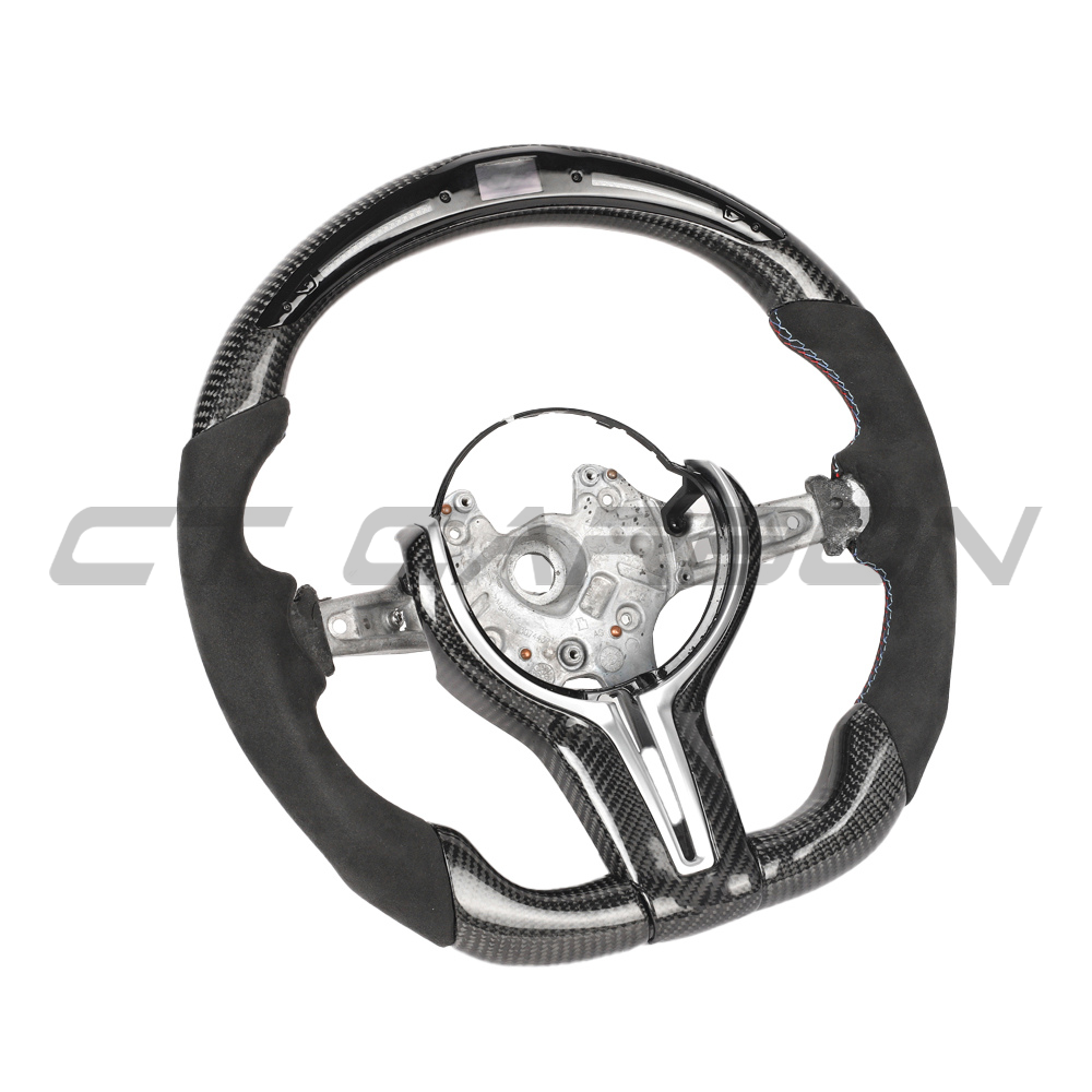 Customize your BMW with the BMW FXX Carbon Fibre, Alcantara & LED Flat Bottom Custom Steering Wheel by CT Carbon, a transformative modification for the interior of your vehicle that you can add a personal touch to.