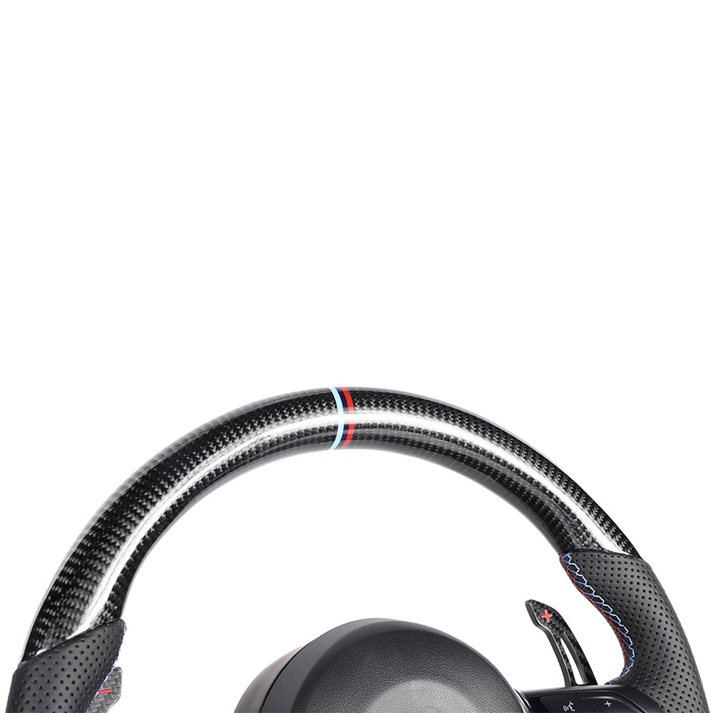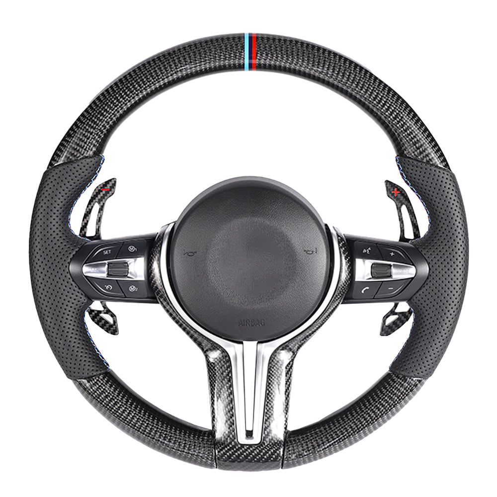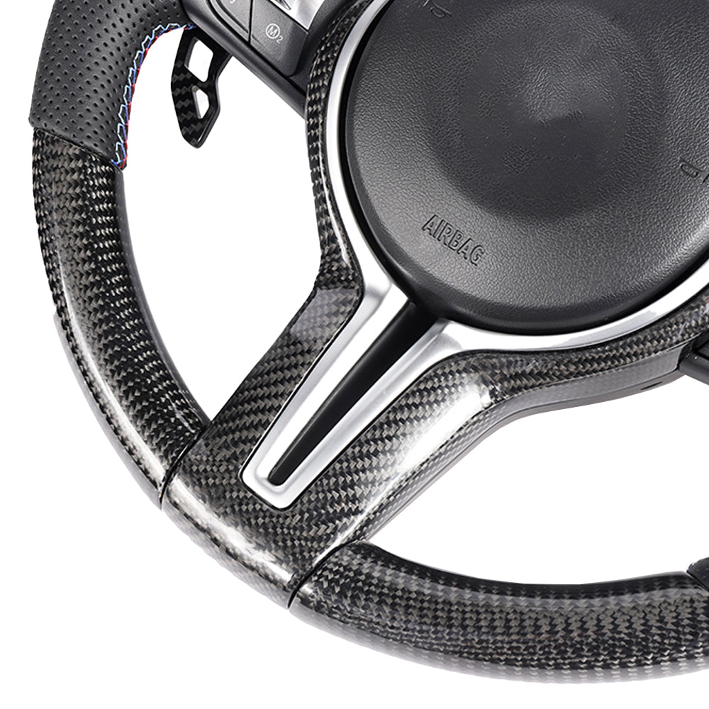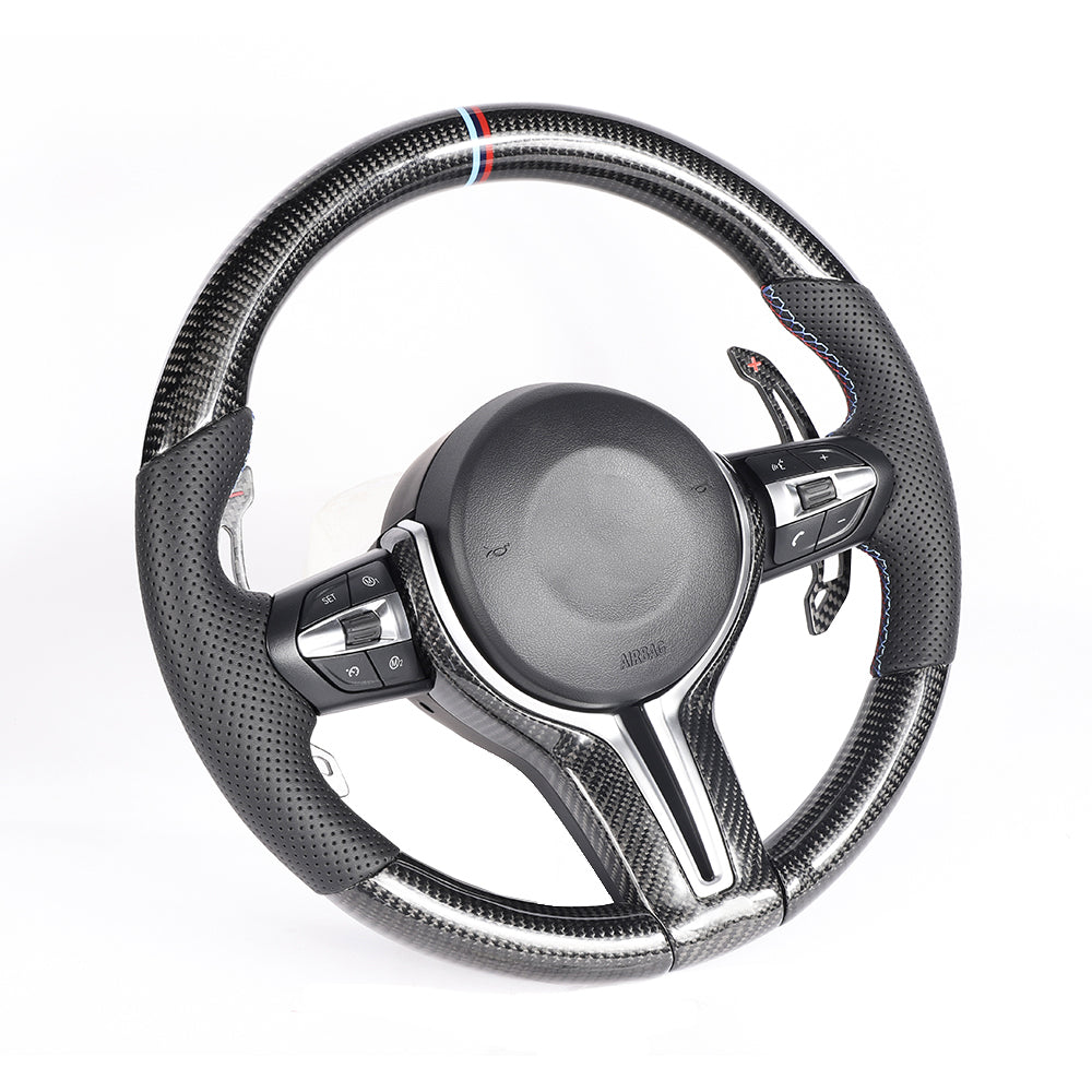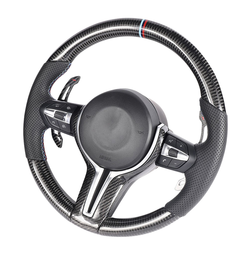 BMW FXX Carbon Fibre & Leather Round Custom Steering Wheel by CT Carbon gives you a premium interior upgrade that enhances style and transforms the interior of any FXX BMW with a perfect fit and quality finish to add a high-end touch to the interior.