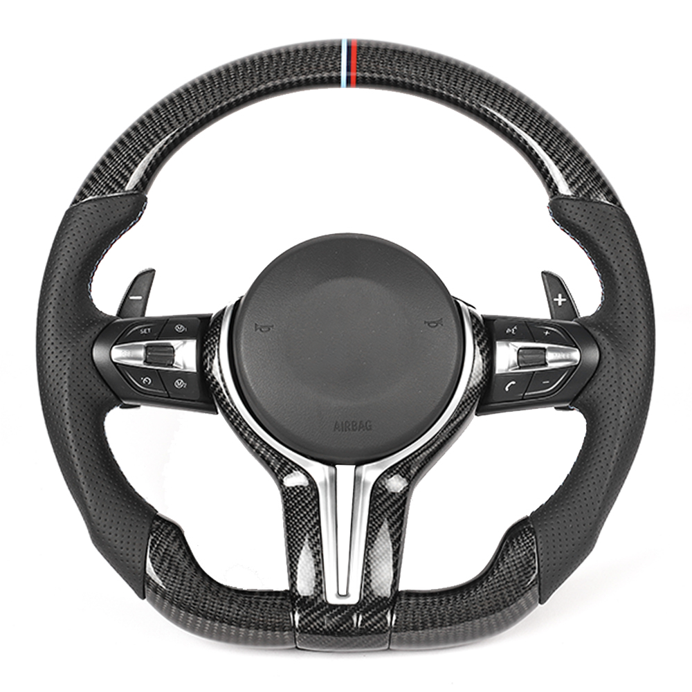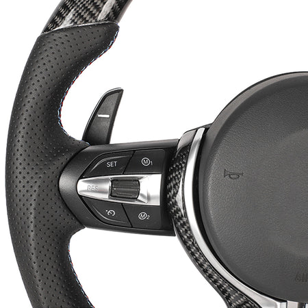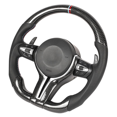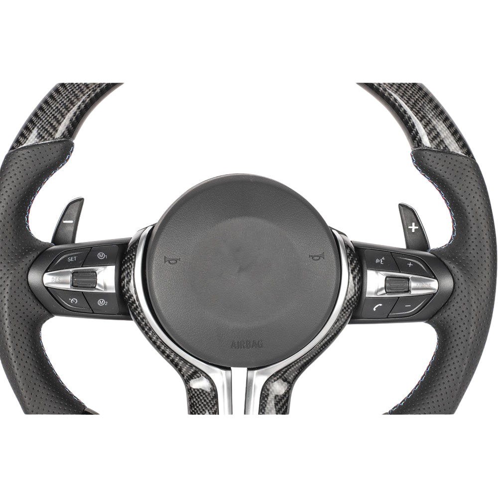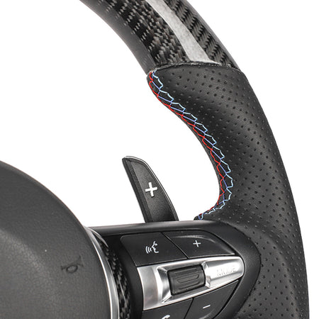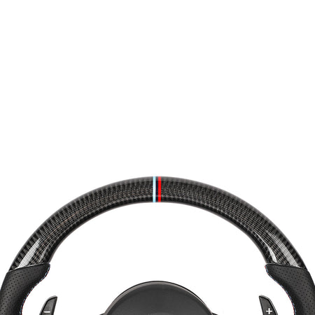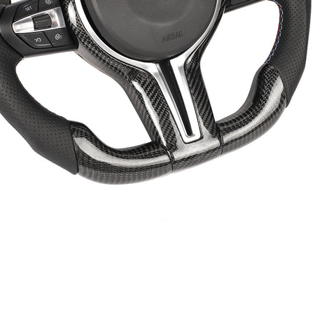 BMW FXX Carbon Fibre & Leather Flat Bottom Custom Steering Wheel by CT Carbon gives you a premium interior upgrade that enhances style and transforms the interior of any FXX BMW with a perfect fit and quality finish to add a high-end touch to the interior.