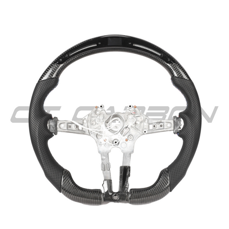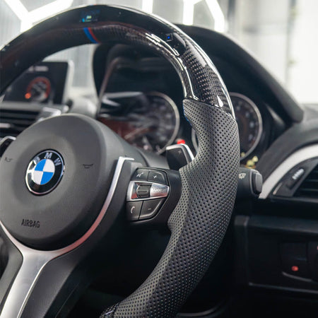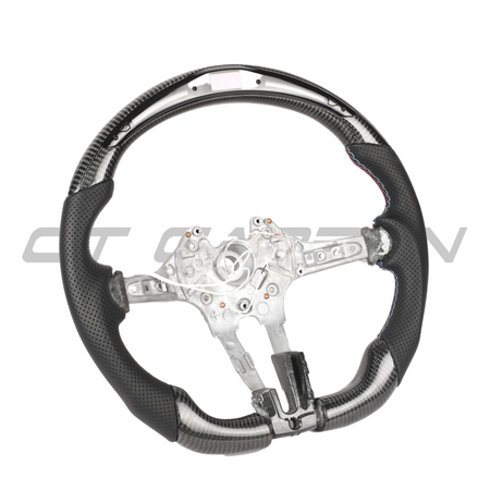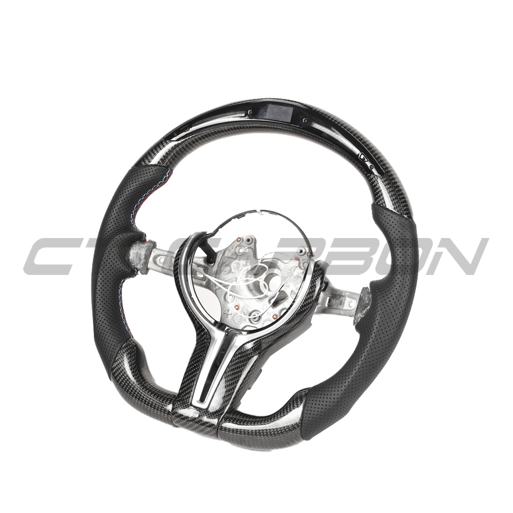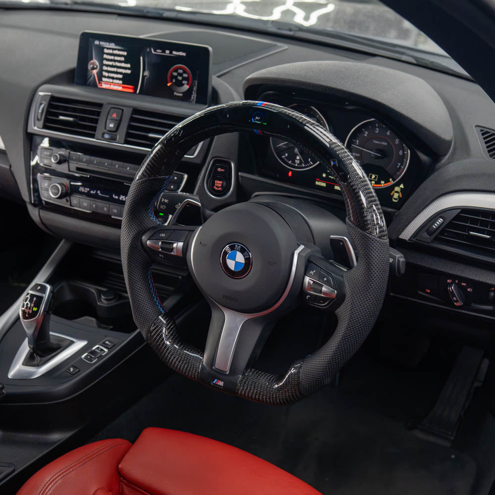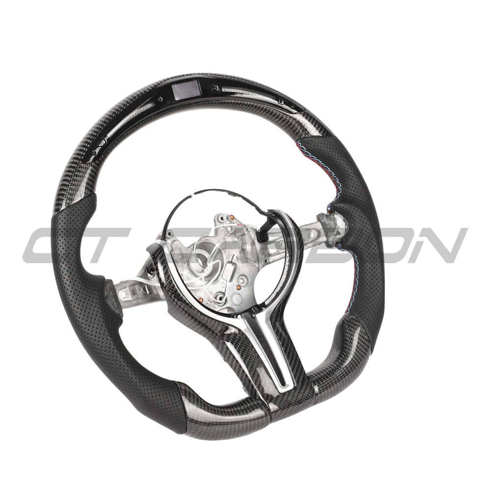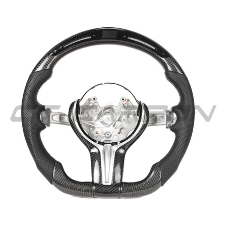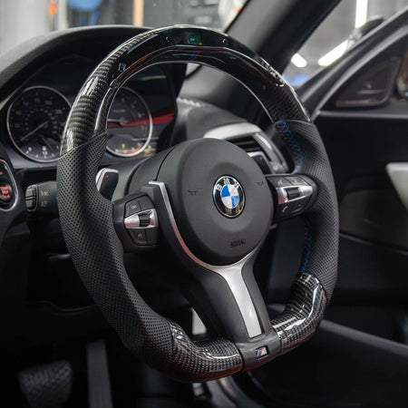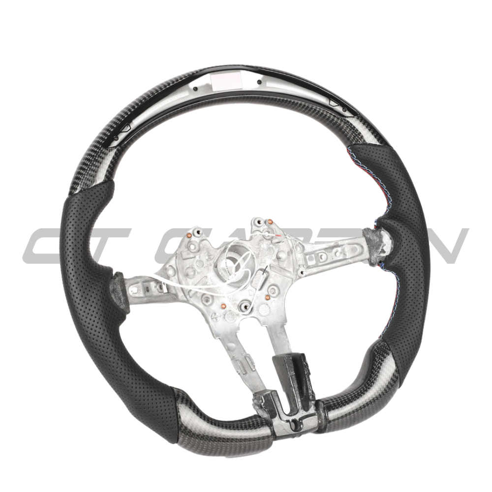 BMW FXX Carbon Fibre & Leather Flat Bottom Custom Steering Wheel by CT Carbon gives you a premium interior upgrade that enhances style and transforms the interior of any FXX BMW with a perfect fit and quality finish to add a high-end touch to the interior.