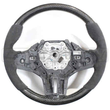 Customize your BMW with the BMW GXX Carbon Fibre & Alcantara Round Custom Steering Wheel by CT Carbon, a transformative modification for the interior of your vehicle that you can add a personal touch to.