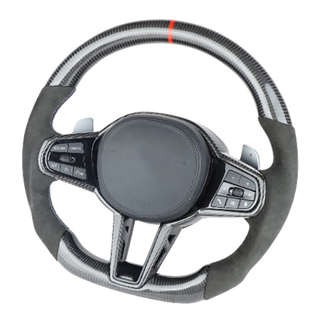 Customize your BMW with the BMW GXX LCI Carbon Fibre & Alcantara Flat Bottom Custom Steering Wheel by CT Carbon, a transformative modification for the interior of your vehicle that you can add a personal touch to.