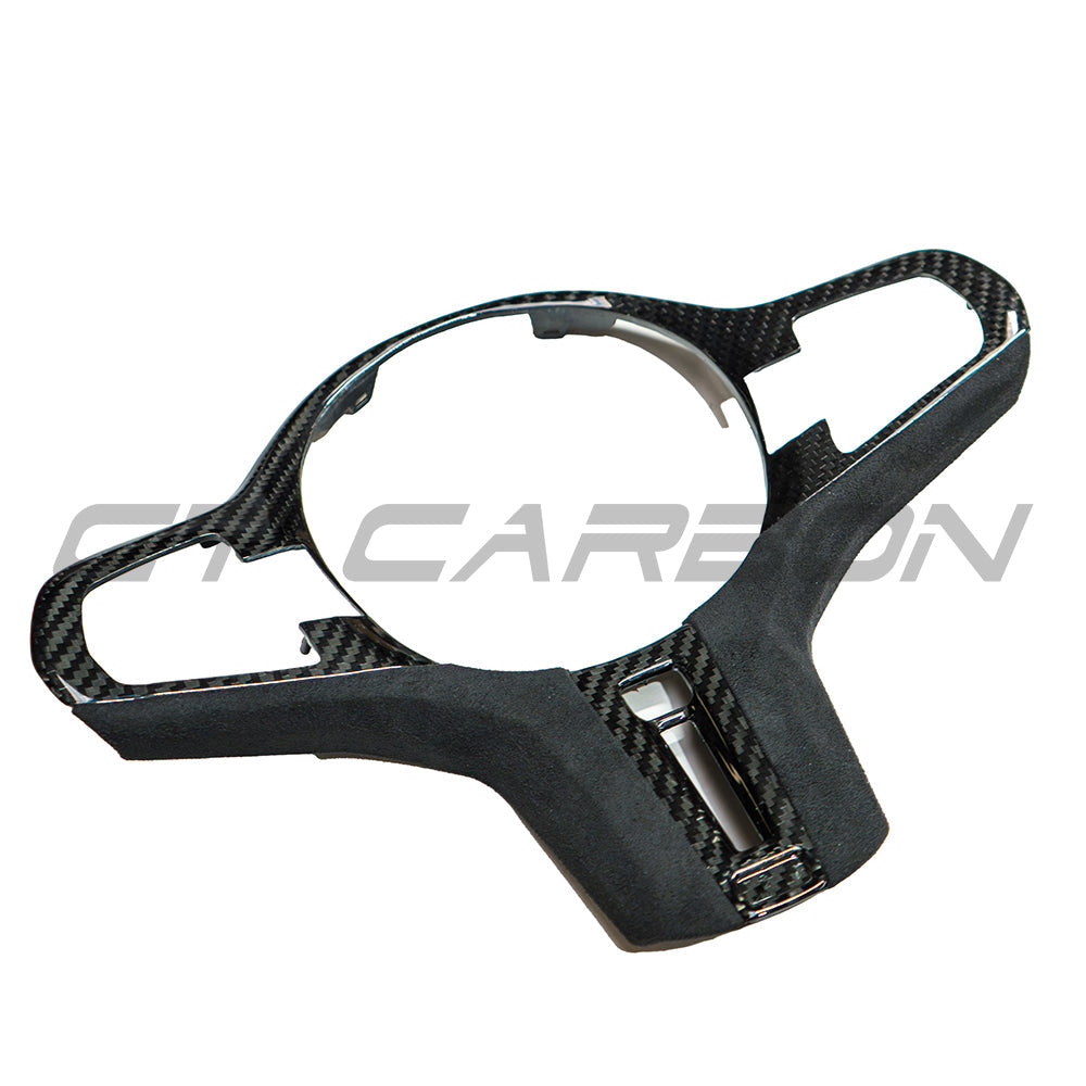 CT Carbon steering wheel trim, made from high-quality carbon fibre, finished in a high gloss with Alcantara trim. Made to fit various BMW models as listed.