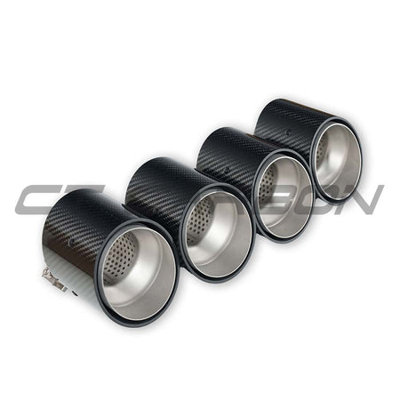 The CT Carbon BMW G87/G80/G81/G82/G83 Carbon Fibre Slash Cut Exhaust Tips for the M2/M3/M4. Finished in Chrome and made from ultra-lightweight pre-preg carbon fibre