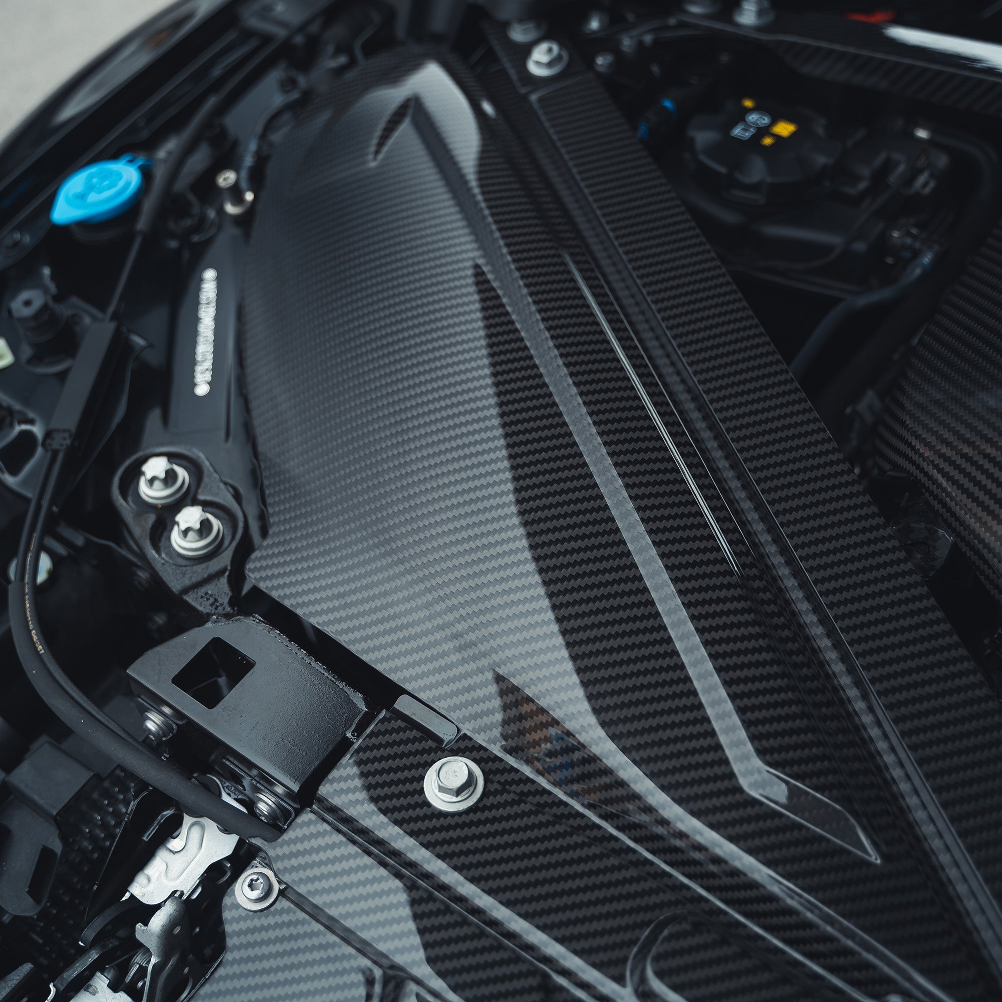 CT Carbon air intake cover made from high-quality pre-preg carbon fibre, made to fit the new BMW M2, M3 and M4.