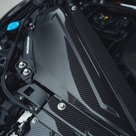 The CT Carbon engine bay dress up kit, all made from high-quality genuine carbon fibre. Featuring the following pieces: