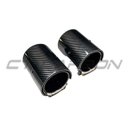 CT Carbon carbon fibre exhaust tips, made from high-quality gloss carbon fibre with gloss black finished metal to match the style of the BMW M2, M3 and M4 competition packs.