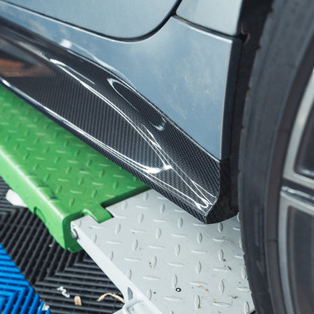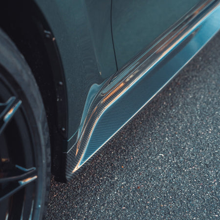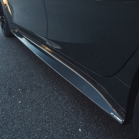 CT Carbon replacement side skirt for the new BMW M3 G80 and G81. Made from high-quality ultra lightweight pre-preg carbon fibre which will completely replace the black plastic side skirts on the car and give you the extension look, in one.