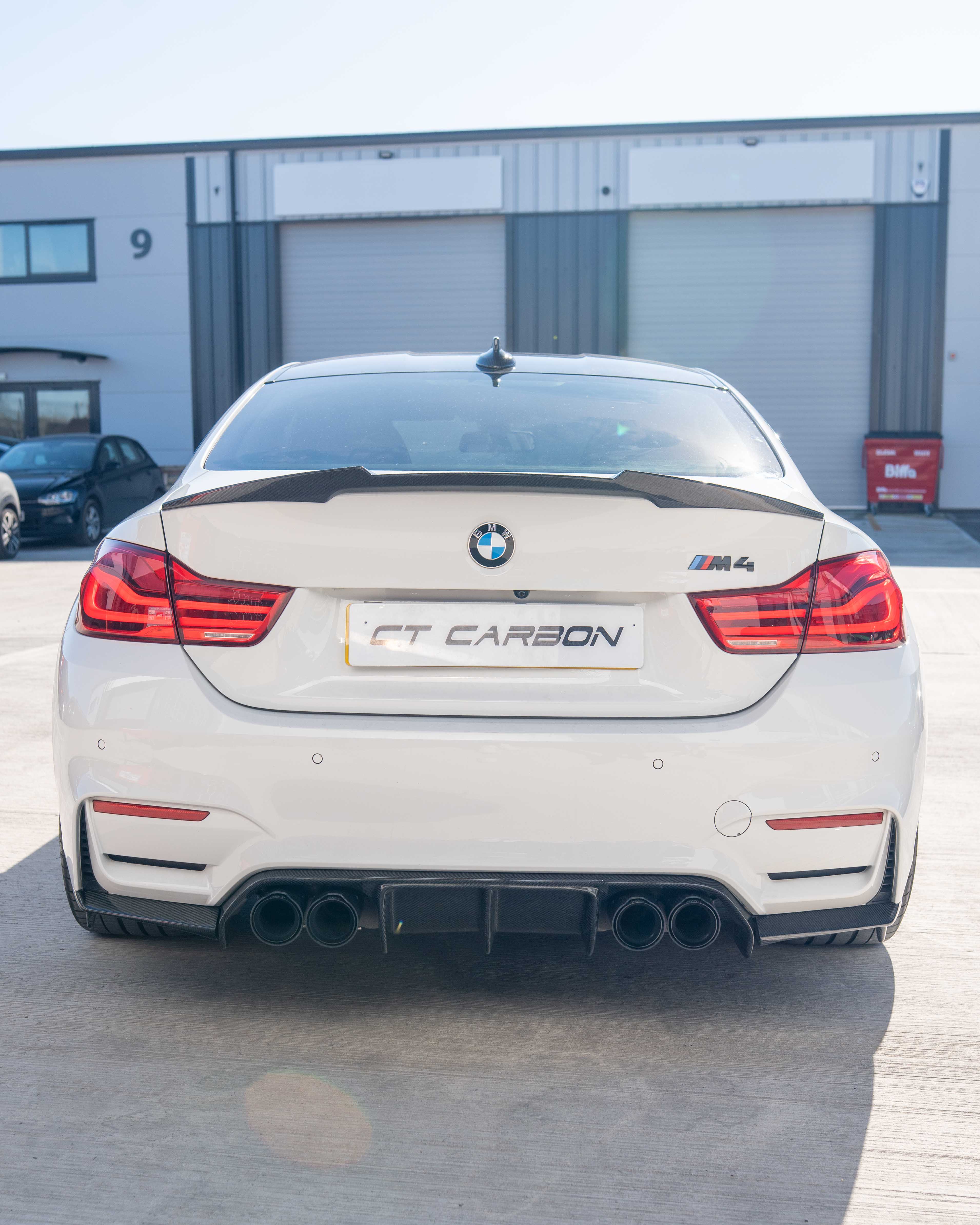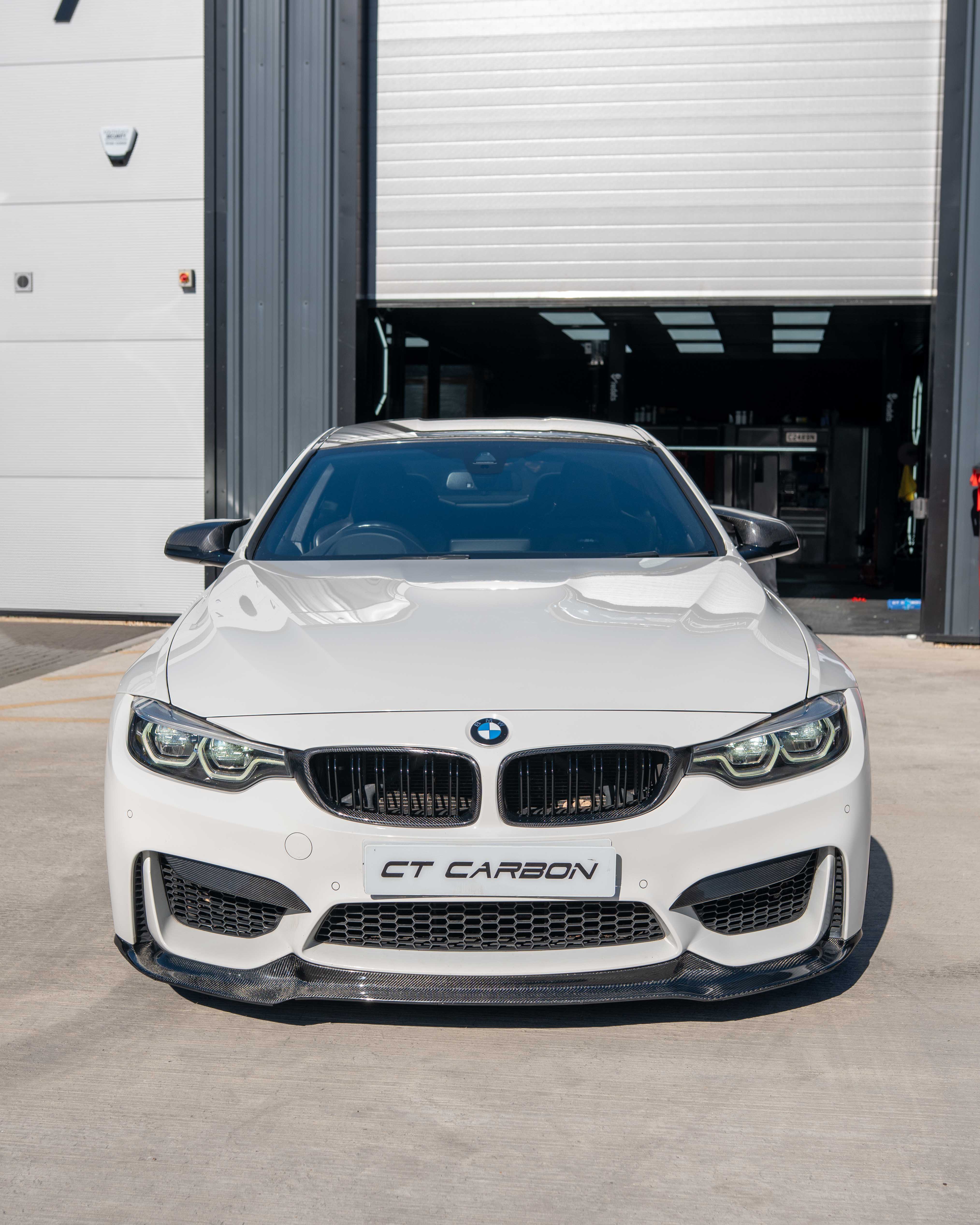 CT Carbon full kit made from high-quality carbon fibre to fit the BMW F82 M4 finished in V style, offered in a high gloss.