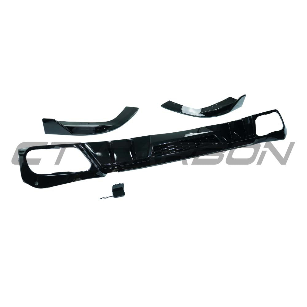 BLAK by CT Carbon presents this premium BMW G05 X5 (including LCI) Diffuser in V2 Styling, made from high-quality gloss black ABS plastic.