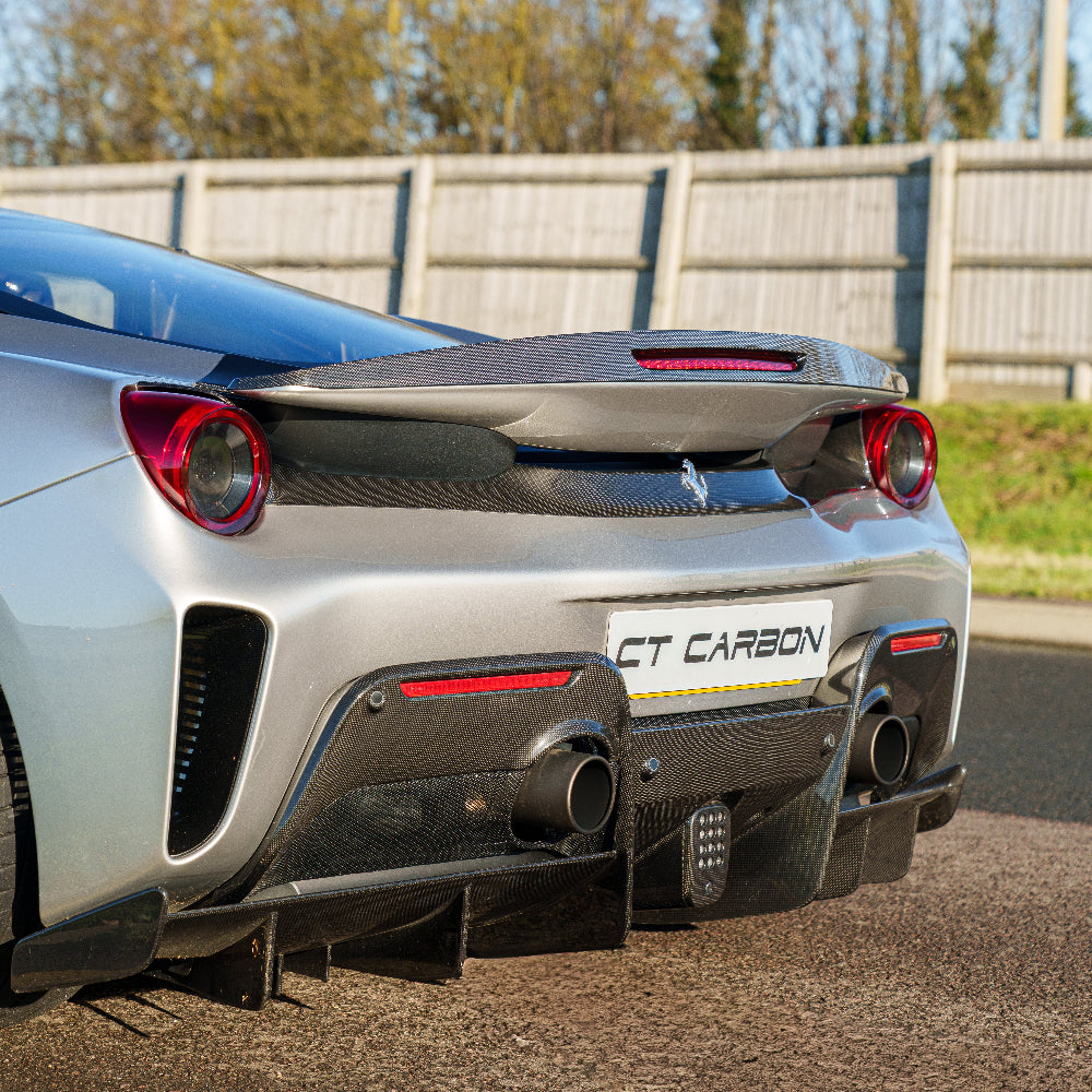 CT Carbon brings this full pre-preg/dry carbon fibre spoiler add on for the Ferrari 488 Pista, designed by our in-house CT Design team & made from 1x1 weave carbon fibre to match the OEM panels.