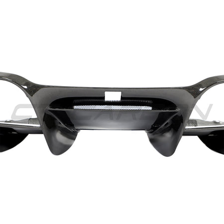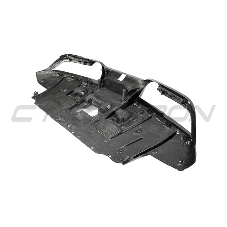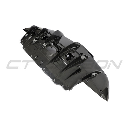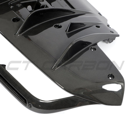 CT Carbon brings this diffuser to fit your Ferrari F8 Tributo/Spider, made from genuine pre-preg carbon fibre, adding aggression to the front end of your vehicle.