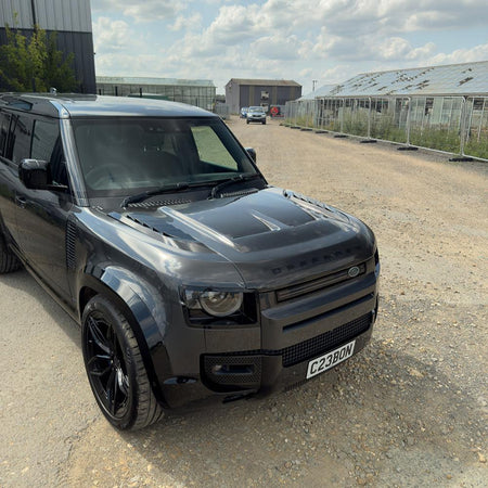 CT Carbon brings this SV style hood/bonnet for the Land Rover Defender 110, 130 and 90, made from high-quality ultra-lightweight pre-preg carbon fibre, a stunning transformation for the front end of your vehicle.