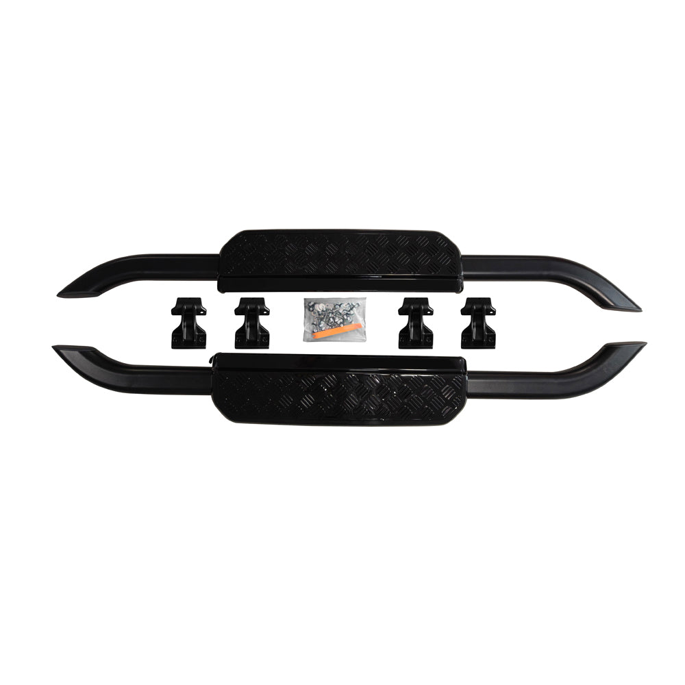 BLAK by CT presents these high-quality GLOSS BLACK side steps for the Land Rover Defender L663 90, made from high-quality materials and finished in GLOSS BLACK.