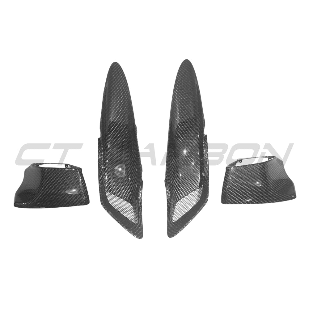 Upgrade your McLaren 720S with these carbon fibre air ducts made from genuine lightweight pre-preg/dry carbon fibre in a high gloss finish.