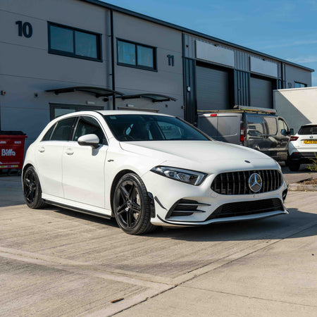 CT Carbon presents this high-quality ABS GLOSS BLACK splitter and canards for the Mercedes A-Class W177 2018-2022