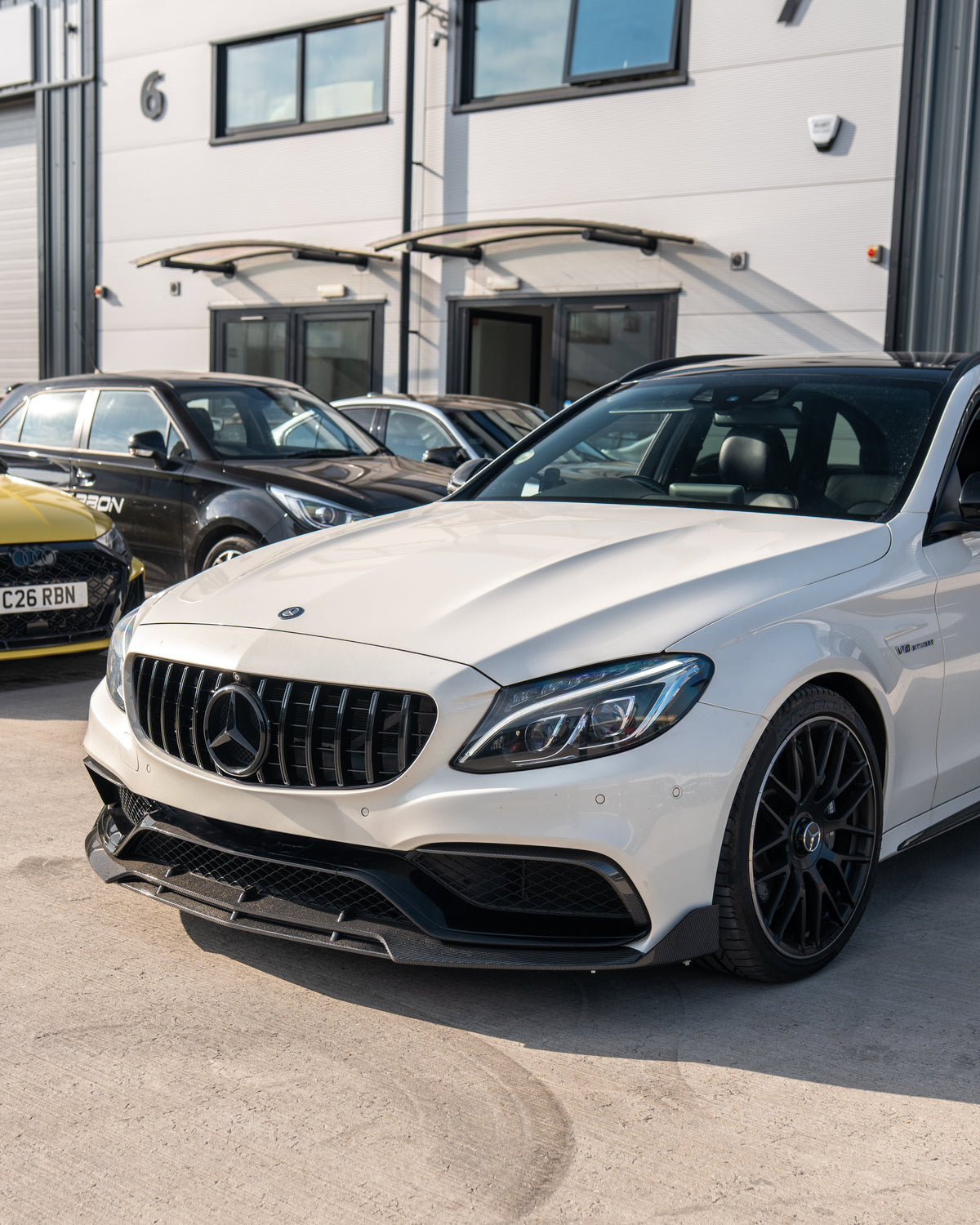 CT Carbon brings this stunning Mercedes C63 carbon fibre front splitter made to fit the C63 and C63S AMG saloon/estate only in a Brabus style made from high-quality carbon fibre & finished in gloss.