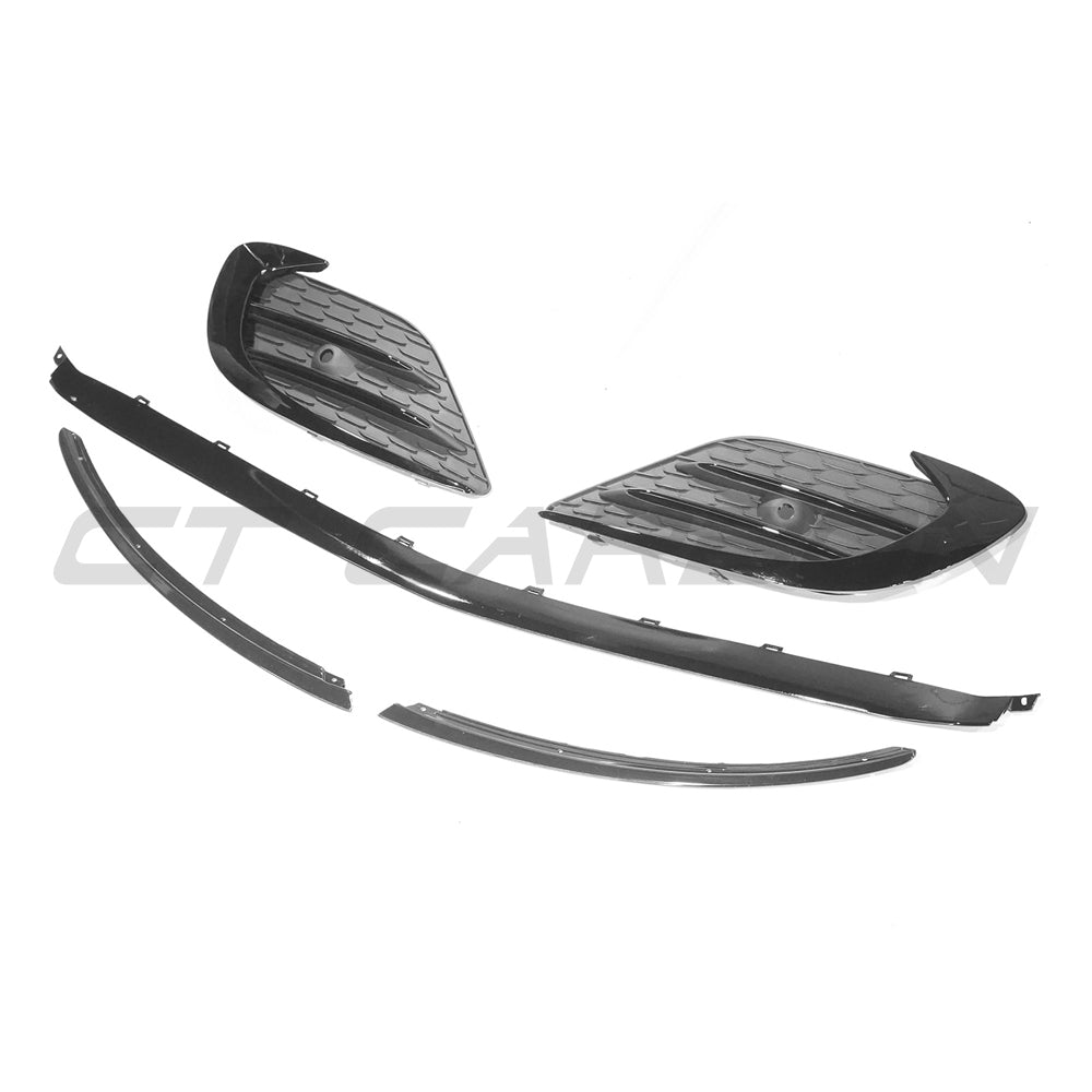 Upgrade & transform the look of your Mercedes W118 CLA front end with this GLOSS BLACK front end pack featuring front grilles, splitter & canards.