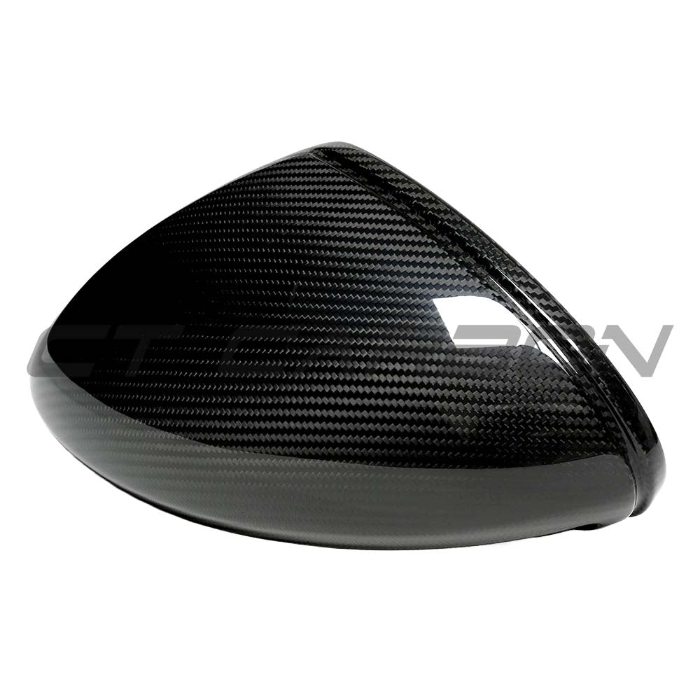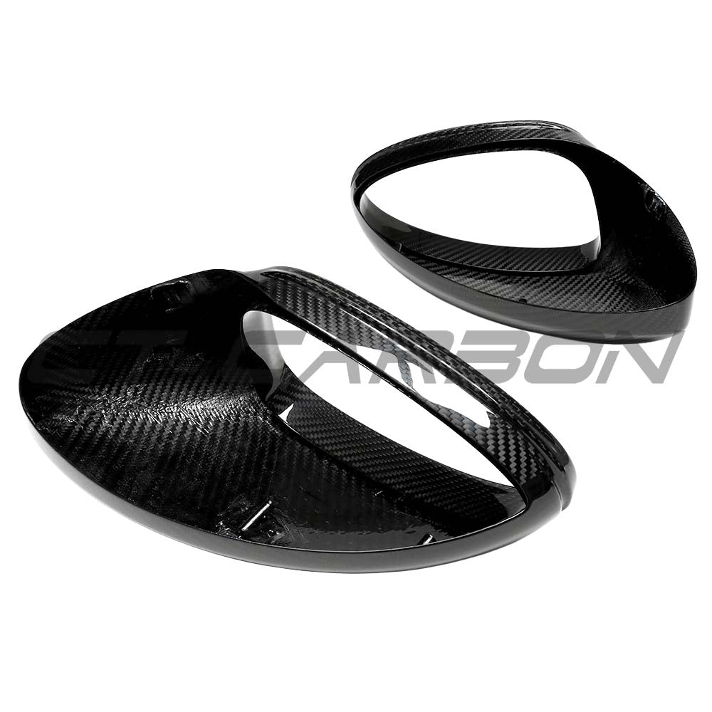 Enhance your Porsche 718 Cayman and Boxster with these Carbon Fibre Mirror Cover Replacements, made from high-quality, ultra-lightweight, dry/pre-preg carbon fibre in a high gloss finish.