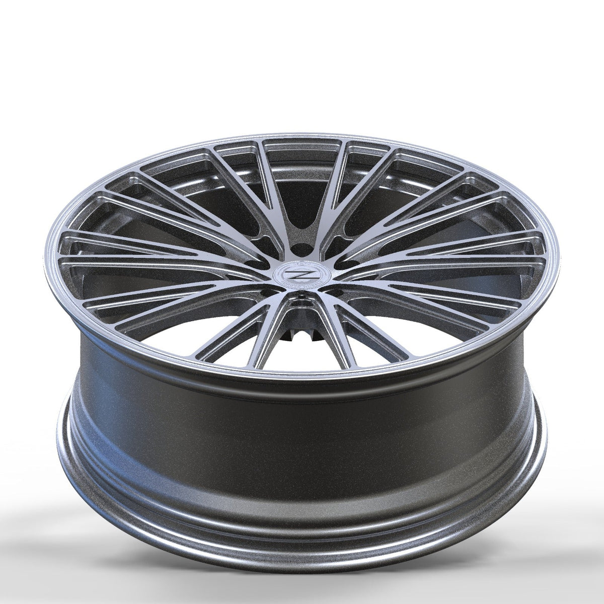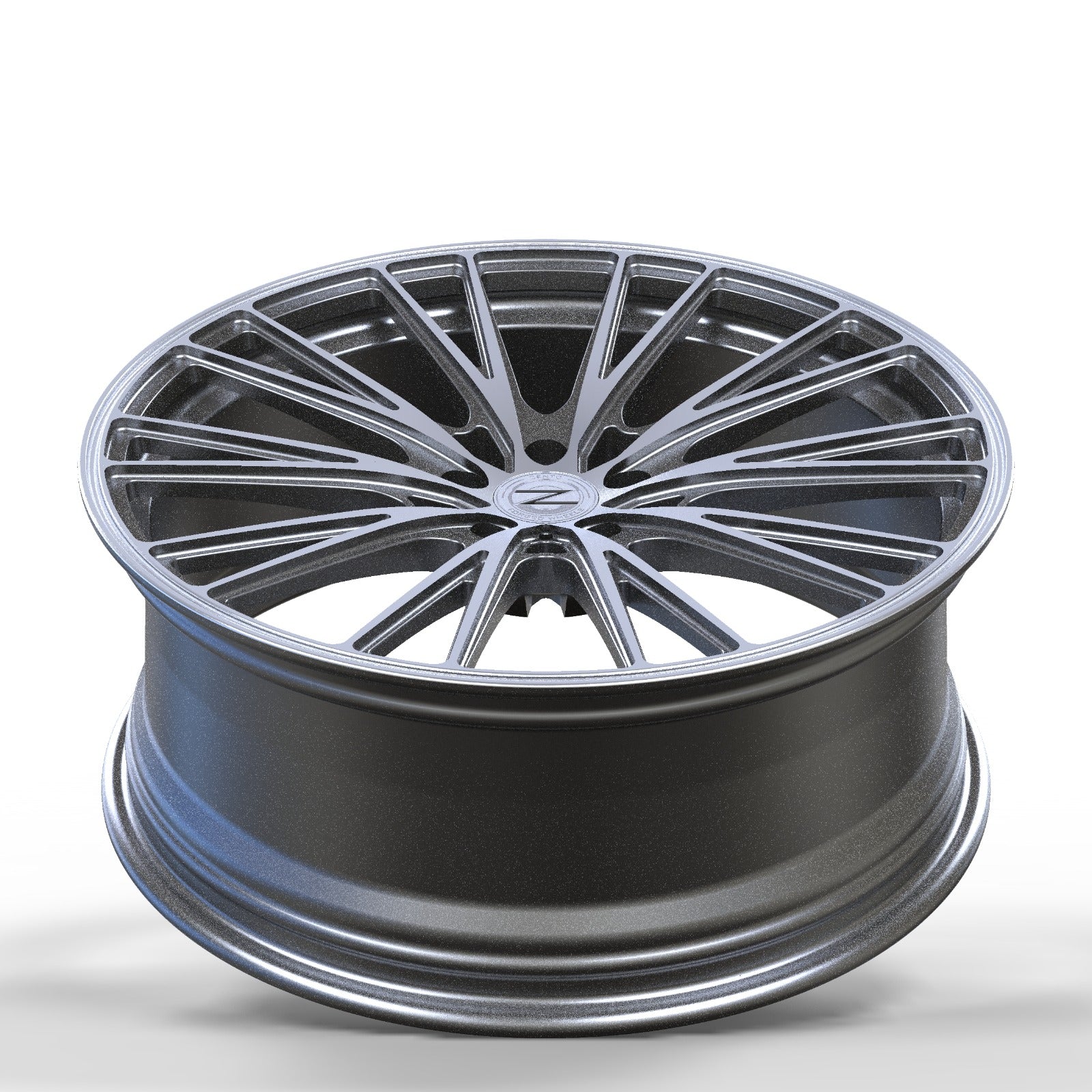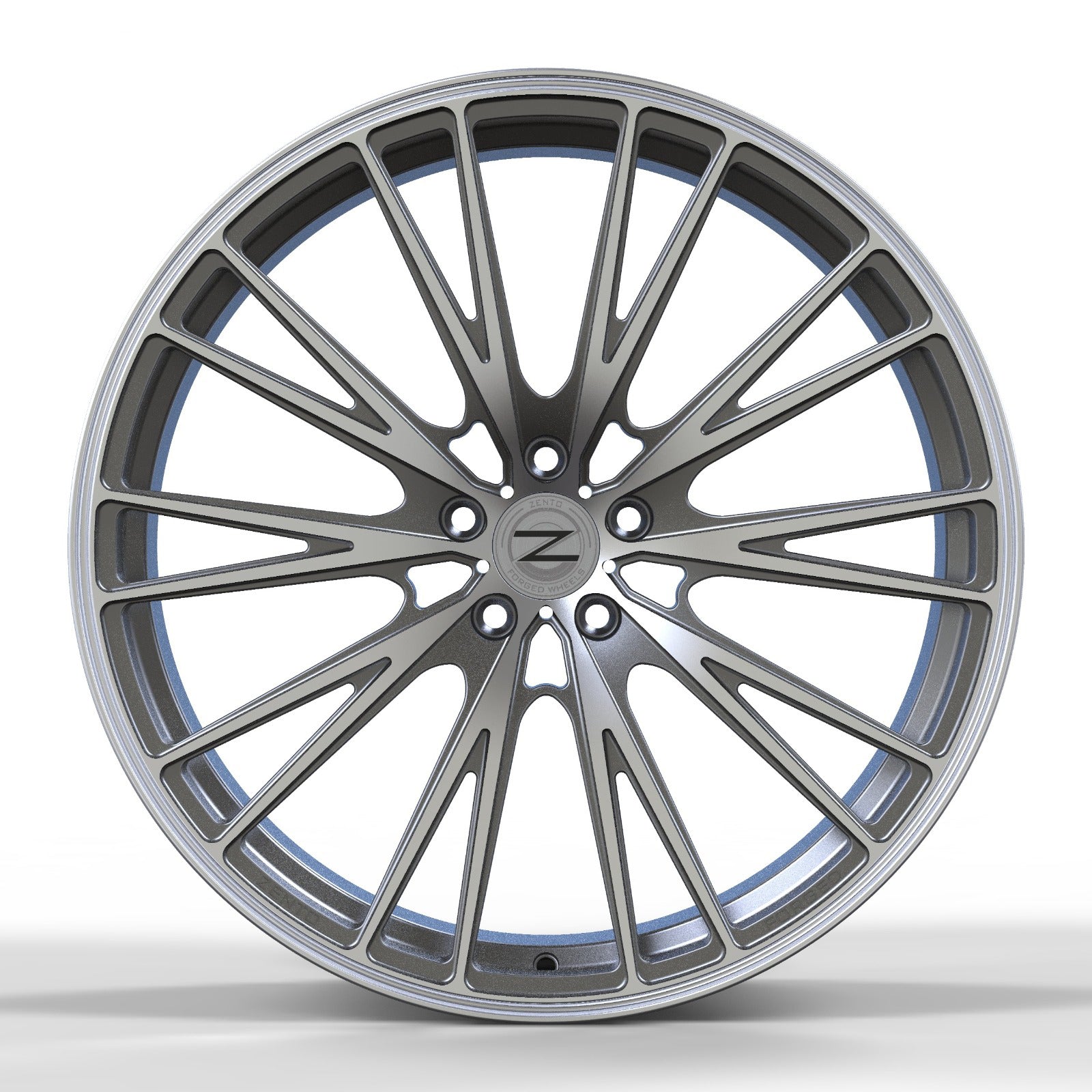 The featured Ozark is shown in mono block structure with brushed silver gloss and anthracite dual colour and a finish matched aluminium Zento centre cap.